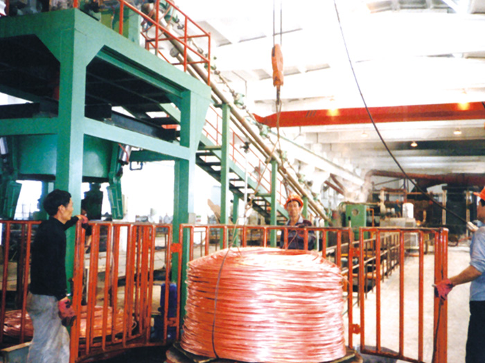 ◆以电解铜或一级废紫铜进行熔炼,采用连铸连轧生产方式生产光亮铜杆。